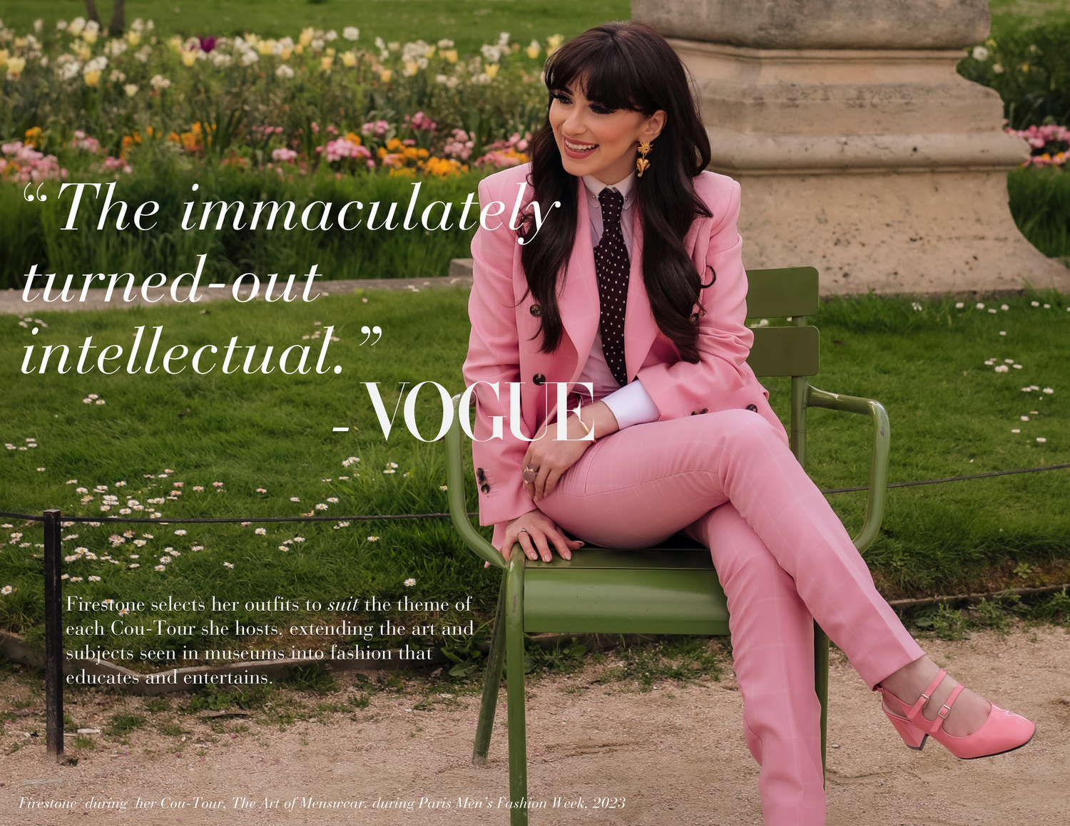 Designing each Cou-Tour like a custom gown, Firestone tailors the look, feel, length, and style to fit each type of discerning clientele—from a family with children of varied ages, to a Fashion Week women’s group, to a couple Honeymooning in the City of Lights. Every Cou-Tour is personally designed based on the interests of her clients, enchanting and engaging guests of all ages across museums, fashion showrooms, boutiques, and unique spaces typically closed to the public.